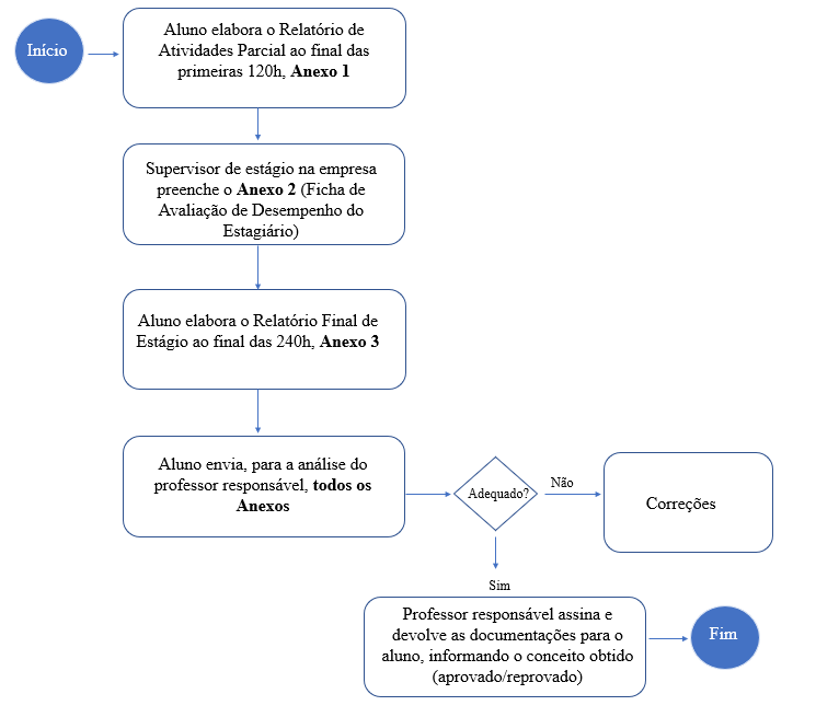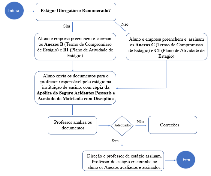 Para o estágio curricular obrigatório (exceto os casos de convalidação de estágio), siga as etapas descritas abaixo, preenchendo os modelos que se encontram na forma de Anexos, disponíveis para consulta e download: